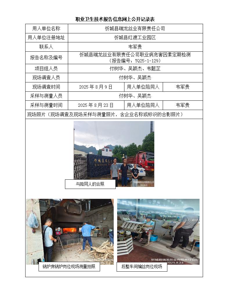 忻城縣瑞龍絲業有限責任公司職業病危害因素定期檢測