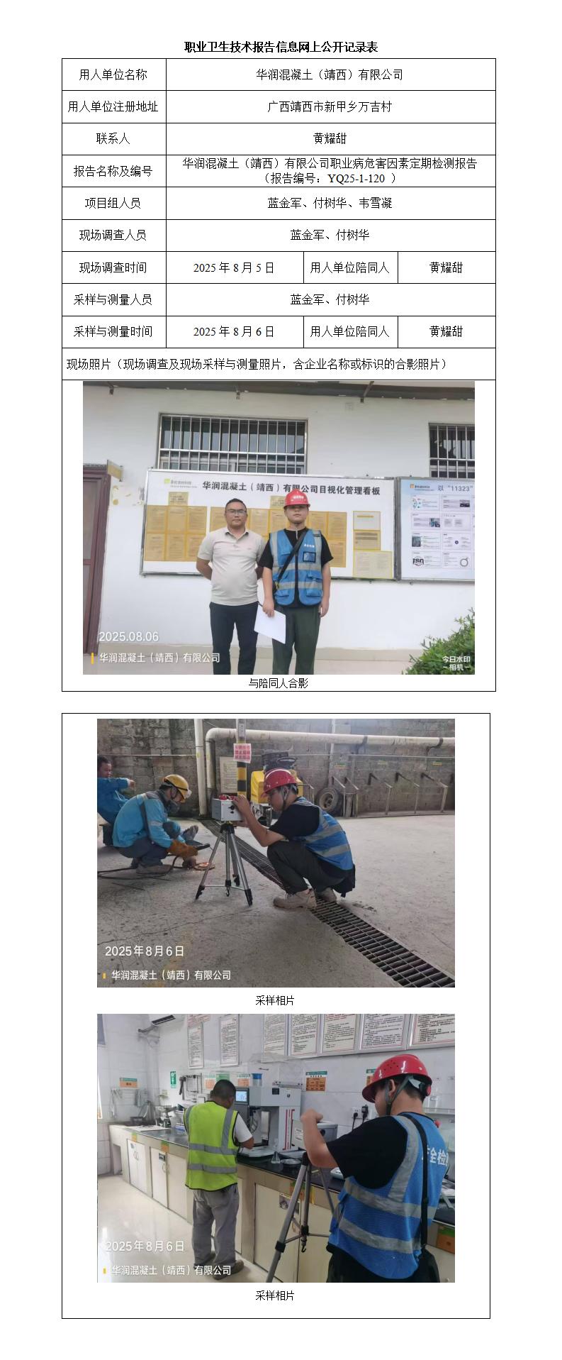華潤混凝土(靖西)有限公司職業病危害因素定期檢測報告信息網上公開記錄表