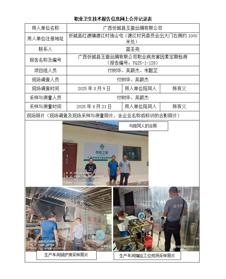 廣西忻城縣玉蠶絲綢有限公司職業病危害因素定期檢測