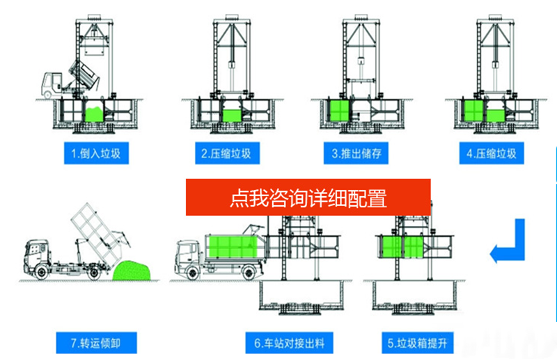 設(shè)有垃圾儲(chǔ)存箱,適合集裝箱式散裝垃圾運(yùn)輸車(chē)卸料,減少運(yùn)輸費(fèi)用。