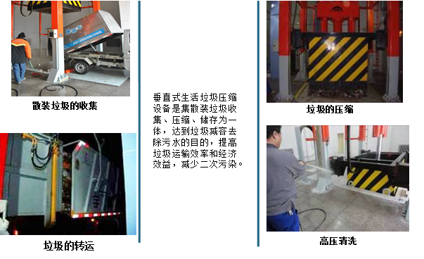 ◇采用垂直壓縮方式,壓縮力大,垃圾塊壓實(shí)密度大。