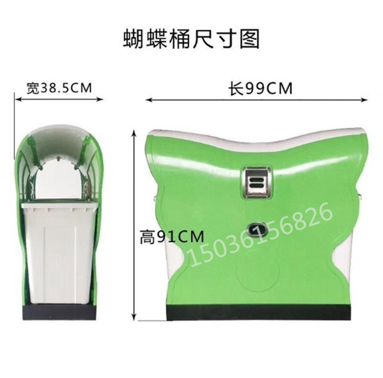 蝴蝶垃圾桶外型尺寸規(guī)格:長(zhǎng)980mm*寬380mm*高900mm