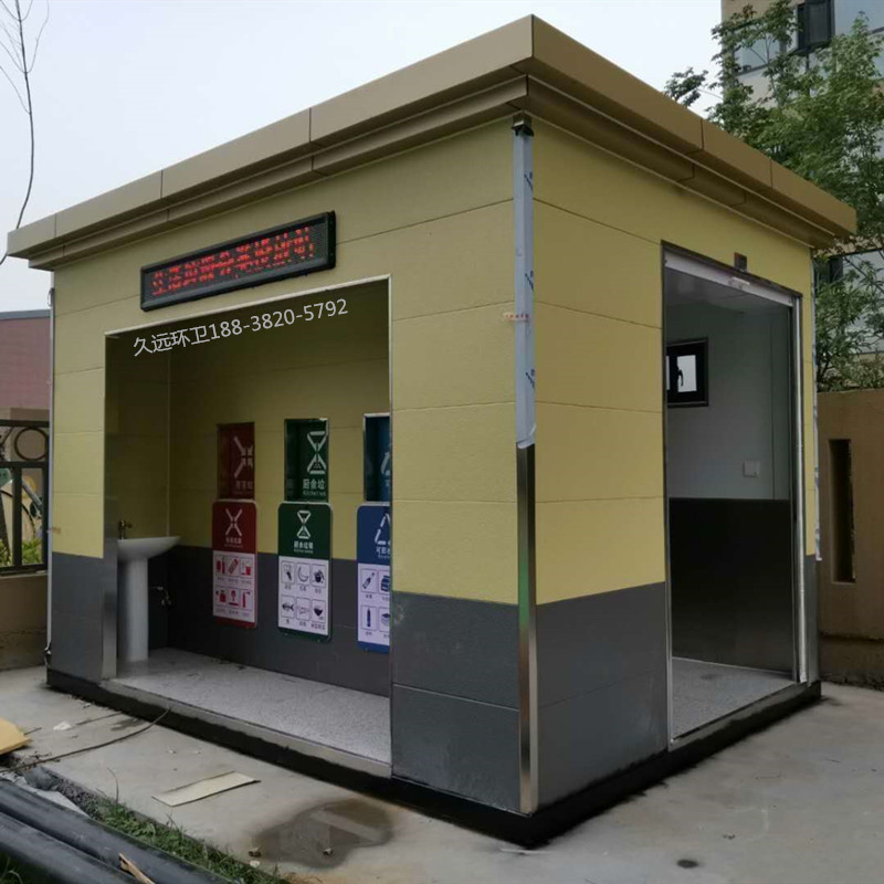 垃圾分類定時定點收集站廠家直銷——久遠環(huán)衛(wèi)是一家集研發(fā)生產(chǎn)、銷售服務為一體的大型環(huán)衛(wèi)設備生產(chǎn)企業(yè),公司注冊資金5000萬元,占地面積50余畝,擁有現(xiàn)代化生產(chǎn)車間1萬余平方米,辦公面積1000余平方米,在職員工200多人,具有雄厚的技術及生產(chǎn)實力。 公司主要生產(chǎn)垃圾壓縮中轉(zhuǎn)站、垃圾分類收集房、環(huán)保移動公廁、各類垃圾桶果皮箱、環(huán)衛(wèi)工具箱、環(huán)衛(wèi)道班房、崗亭、休閑座椅、等公共環(huán)衛(wèi)設施。